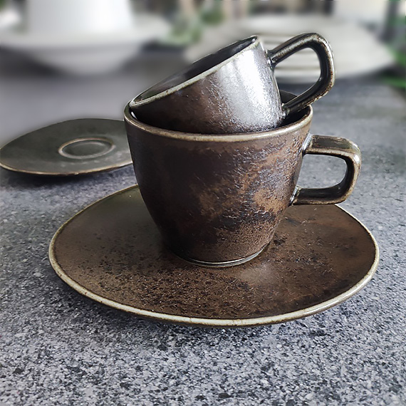 Чашка 220 мл с блюдцем Reactive Black, изготовлена из высококачественного прочного фарфора с аутентичной отделкой. Посуда покрыта двойной глазурью, что обеспечивает ей повышенную прочность. Каждая тарелка отличается друг от друга уникальным дизайном и цветом благодаря технике реактивного глазирования.Также посуда не впитывает посторонних запахов, выдерживает резкие перепады температуры и легко моется при помощи обычных чистящих средств. Элегантный и утонченный внешний вид позволит фарфоровой посуде стать изысканным украшением любого стола, что делает ее незаменимой для заведений общественного питания: ресторанов, баров, кафе.