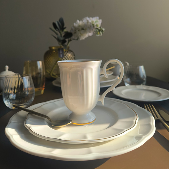 Cana pe suport RETRO RITZ GOLD cu capacitatea de 260 ml, este realizată din porțelan de înaltă calitate, cu rezistență ridicată la acțiunile mecanice, zgârieturilor și fisurilor. Vesela de cea mai înaltă calitate este produsă folosind tehnologii inovatoare ce permit obținerea unui produs care se distinge prin rezistența și durabilitatea deosebită a acestuia. Vesela nu absoarbe mirosurile străine, poate suporta modificările bruște ale temperaturii și este ușor de curățat cu ajutorul unor agenți de curățare obișnuiți. Un aspect elegant și sofisticat va permite porțelanului să devină o decorație deosebită a oricărei mese, ceea ce îl face indispensabil pentru restaurante, baruri, cafenele.